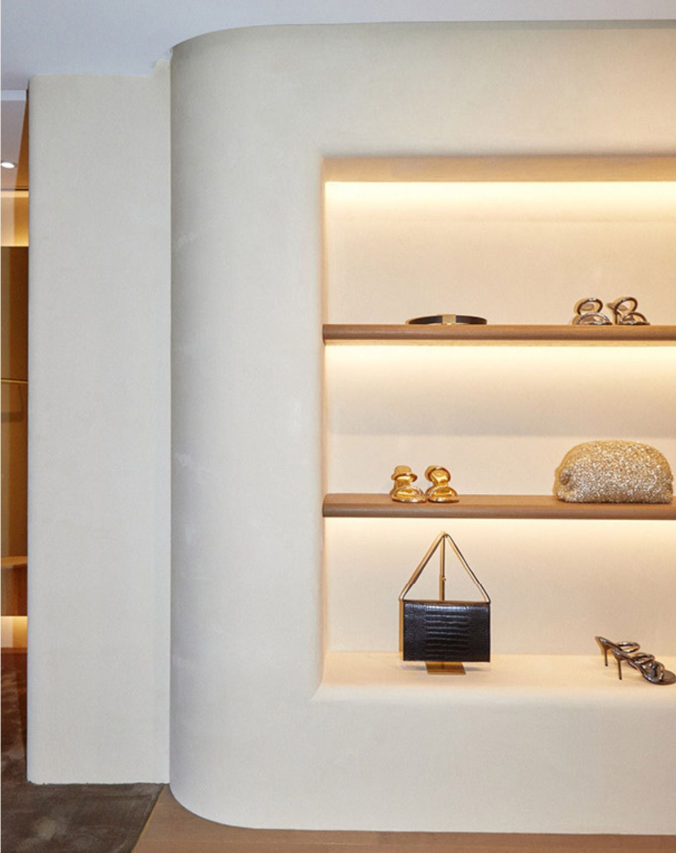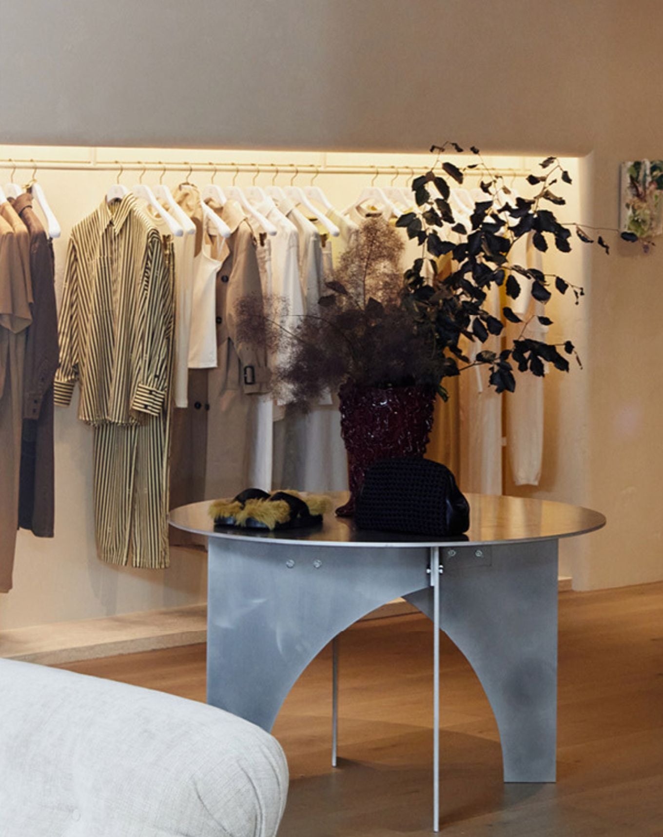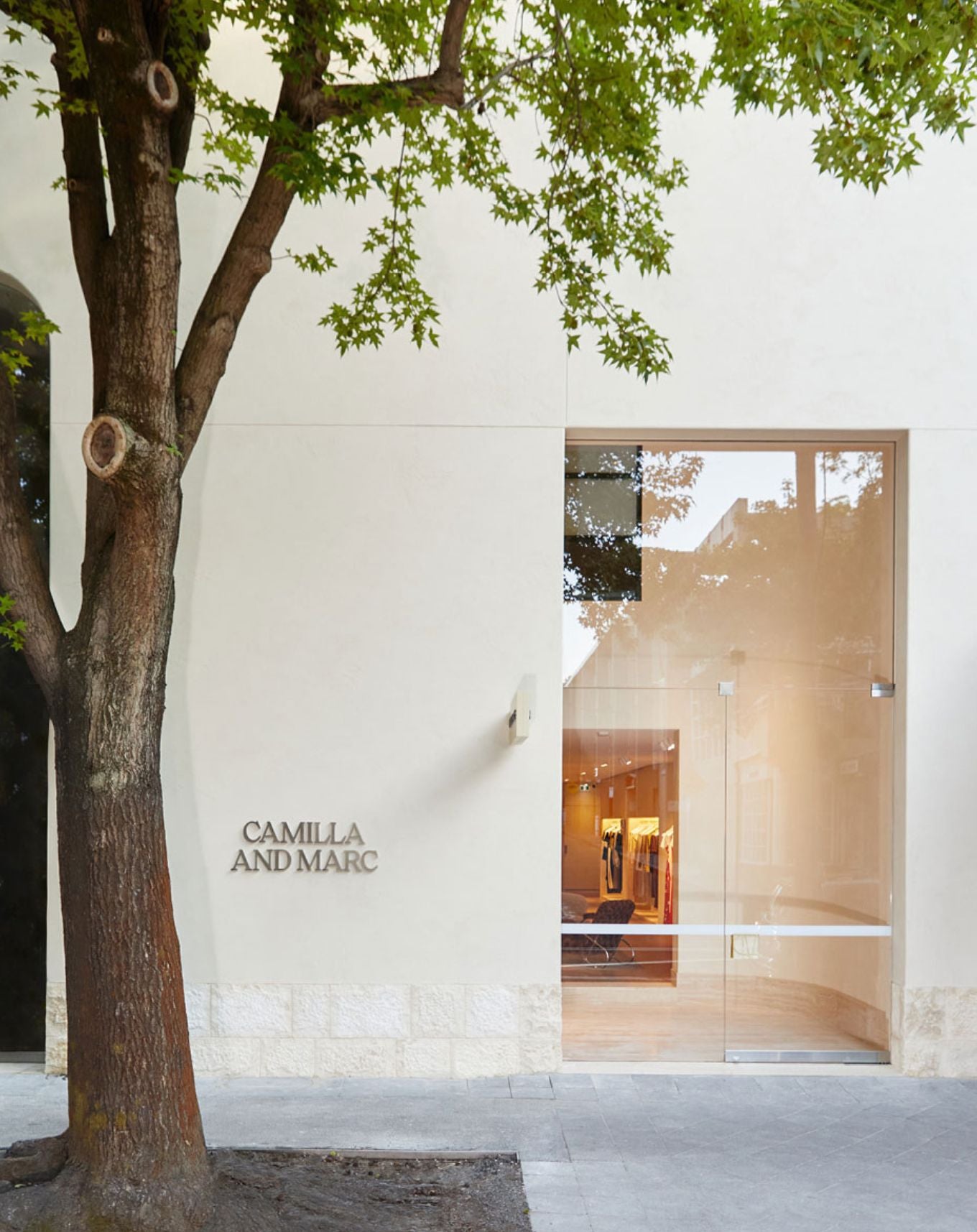 Grounded in a muted palette to allow space for the clothing to be appreciated and truly enjoyed, CAMILLA AND MARC Woollahra plays with lighting, texture and tone. Hand-rendered venetian plastered walls are wax-finished providing a neutral yet tactile backdrop to the collections and are recessed to house curved rails which wrap the space shaping a gallery-like experience.