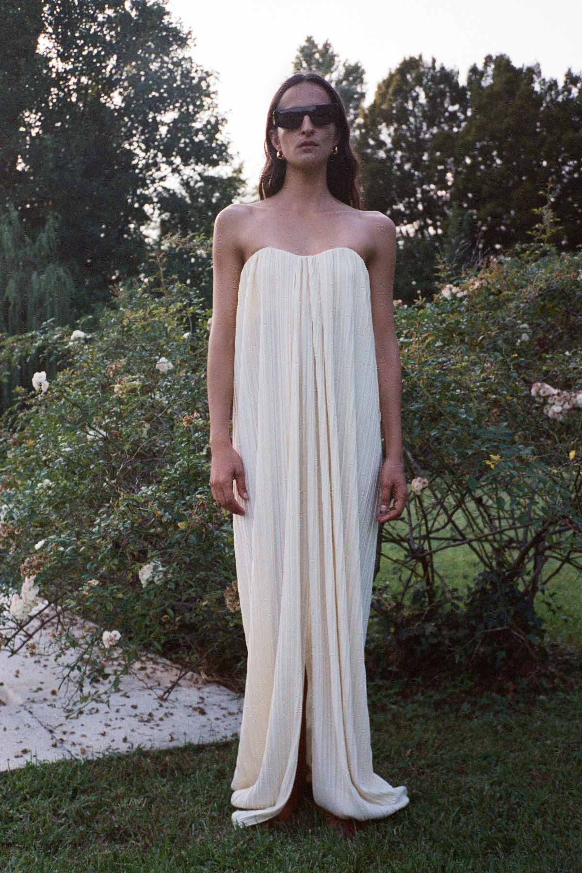 CAMILLA AND MARC Resort 26 is a study in sculptural refinement, inspired by the elemental beauty of nature and the subtractive philosophy of artist Alexandros Zygouris. Soft tailoring, fluid draping, and tactile textures evoke transformation and erosion, while a grounded palette and sculptural accessories reflect a quiet strength. The collection reimagines classic forms through a poetic, architectural lens.