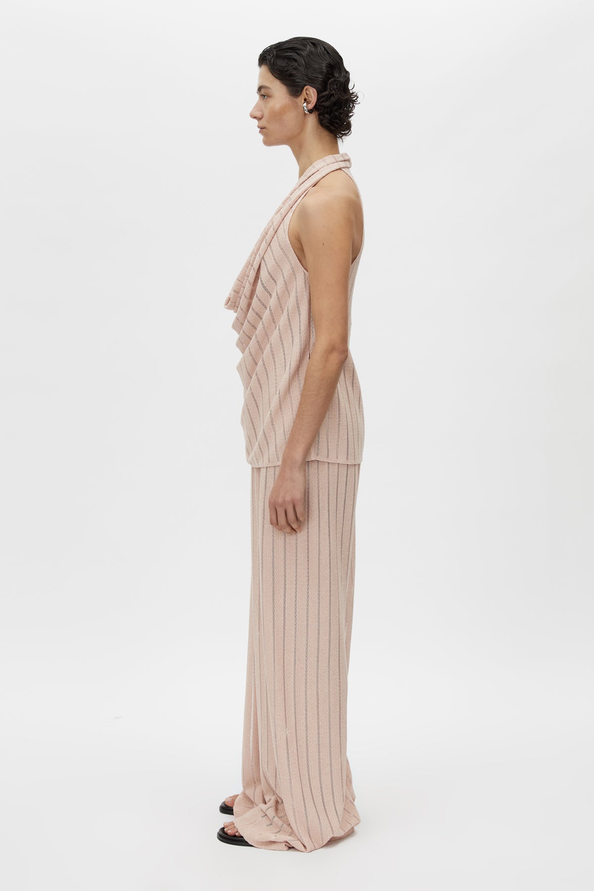CAMILLA AND MARC Imara deep cowl-neck halter top in pink with high side-seam splits. Bind with pin stitch hem.